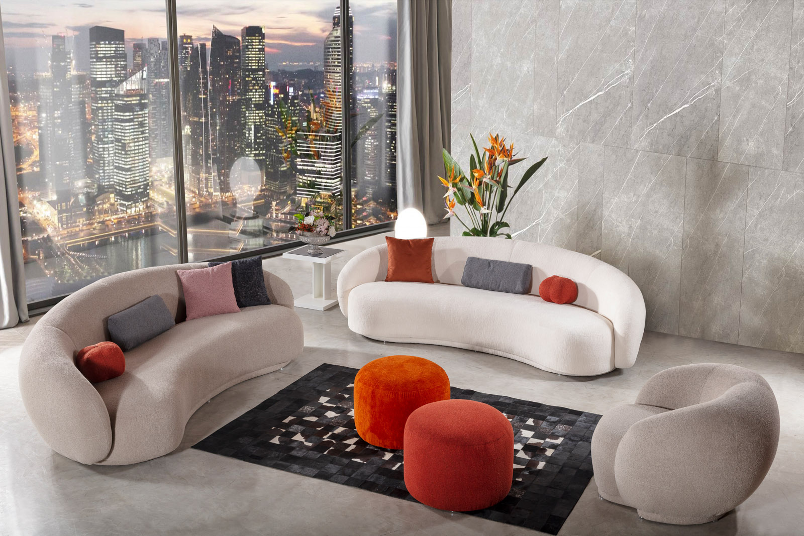 Venüs İkili / Üçlü Takım, yumuşak hatları ve dengeli oranlarıyla yaşam alanlarına sıcak ve davetkâr bir atmosfer kazandırır. Venüs, Nirvana ve koltuk modülleriyle konutlar, villalar ve ofisler için esnek ve fonksiyonel bir kullanım sunar. Fırınlanmış masif ahşap iskeleti ve preslenmiş kontrplak oturum tabanı sayesinde sağlam ve uzun ömürlü bir yapı oluştururken, geniş oturum alanı ile konforu ön planda tutar.